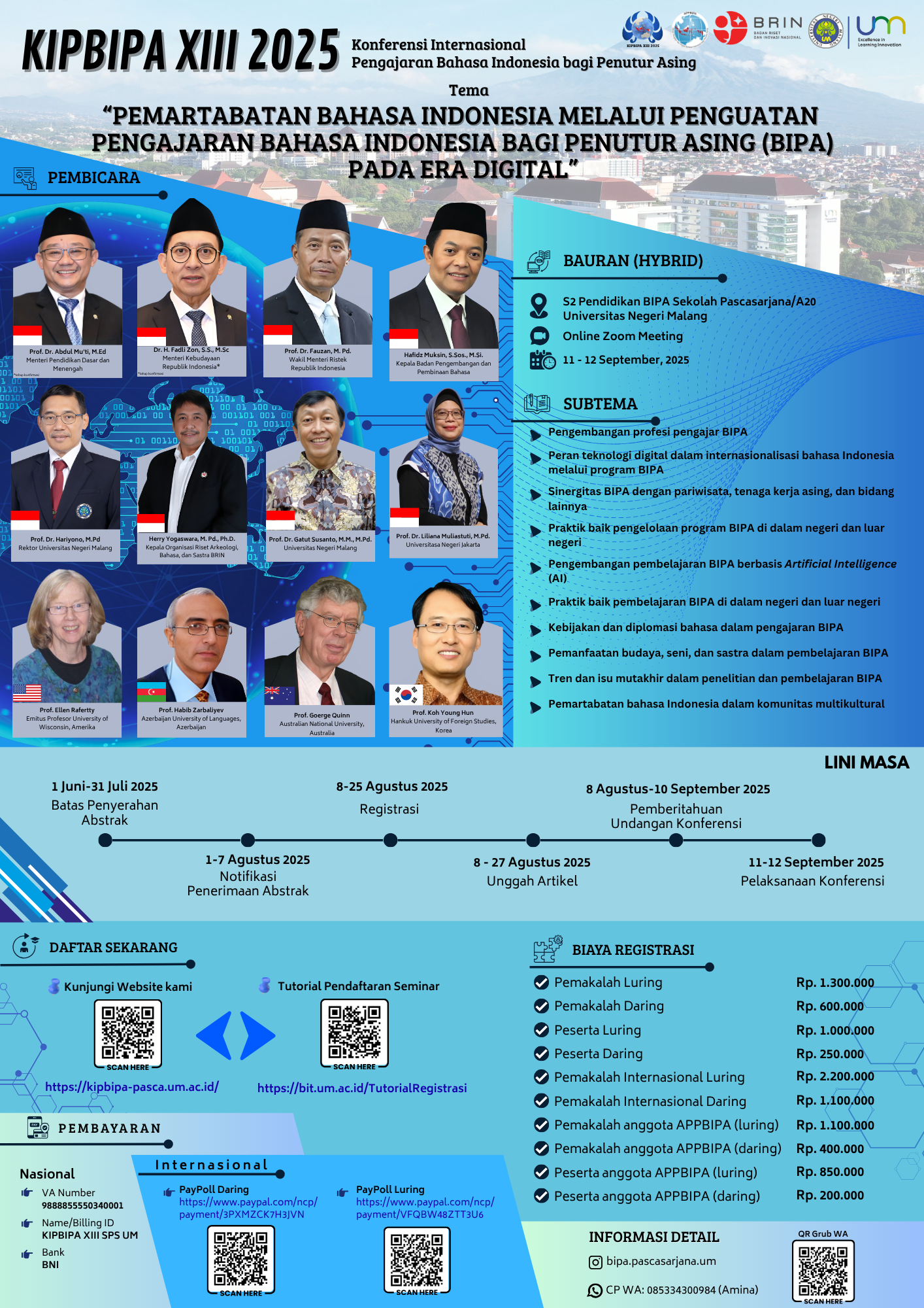 Mari bergabung bersama para pengajar dan pegiat BIPA dari seluruh dunia. Informasi lebih lanjut di https://kipbipa-pasca.um.ac.id/